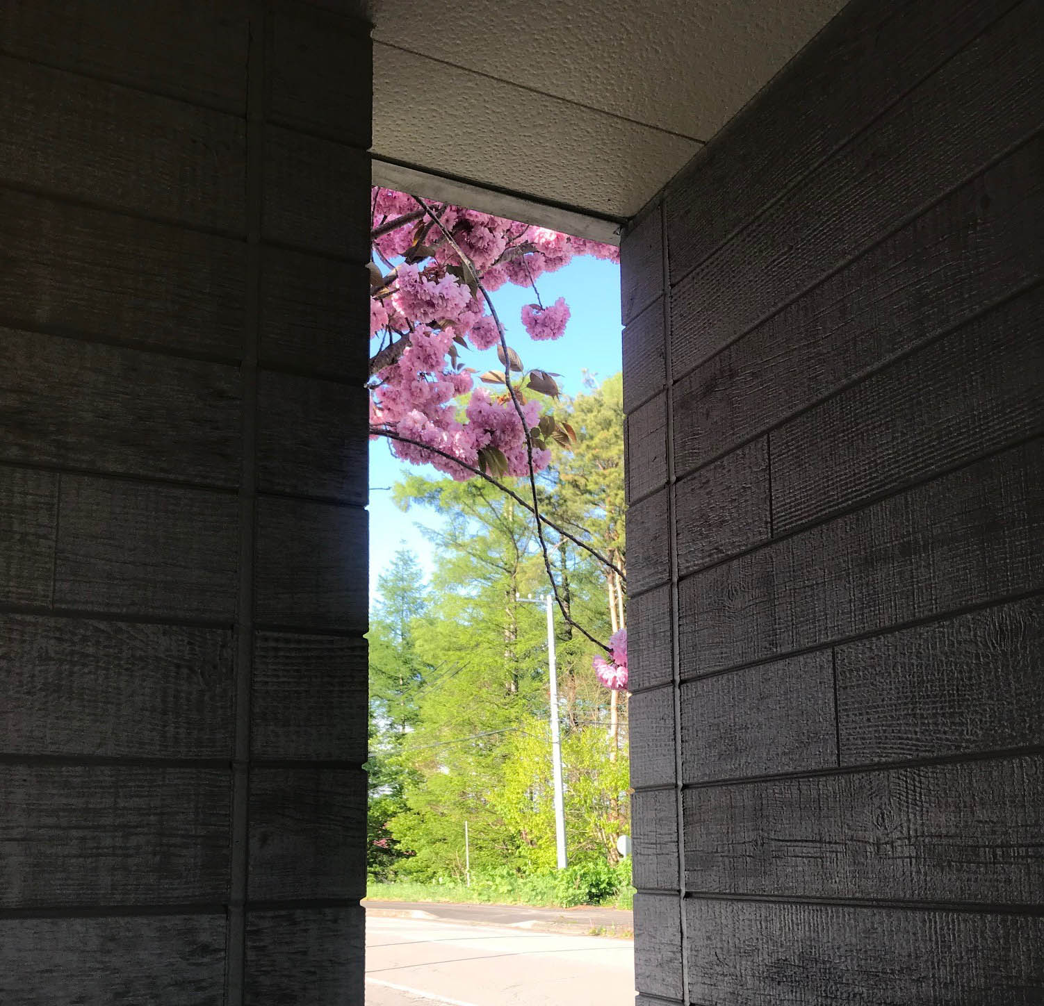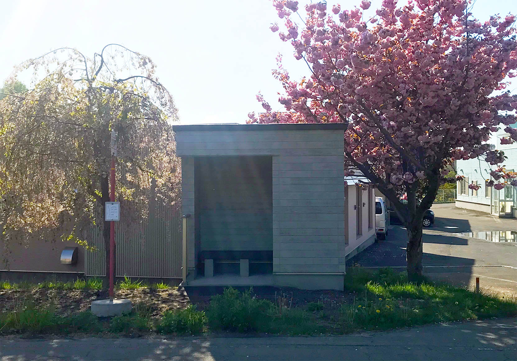 敷地の横には桜が咲いており、春頃には桜を眺めながらバスを待てる空間です。